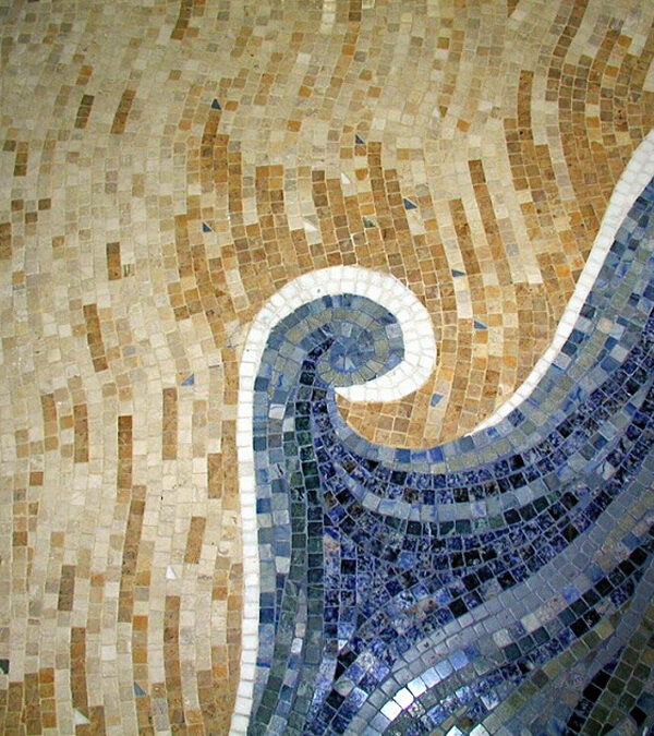 The marble slabs the client selected were slightly shorter than the height of the shower walls. We suggested adding the decorative mosaic bands as a solution.